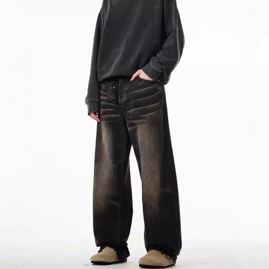American High-street Wasteland Style Retro Straight-leg Jeans For Men